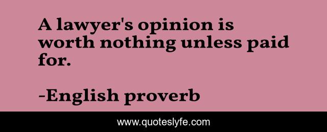 This page presents the quote "A lawyer's opinion is worth nothing unless paid for.". Author of this quote is English proverb. .