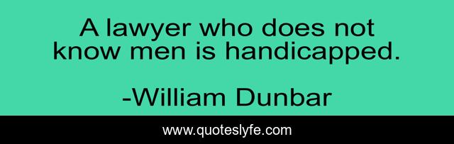 This page presents the quote "A lawyer who does not know men is handicapped.". Author of this quote is William Dunbar. This quote is about men, lawyer,.