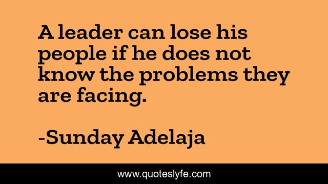This page presents the quote "A leader can lose his people if he does not know the problems they are facing.". Author of this quote is Sunday Adelaja. .