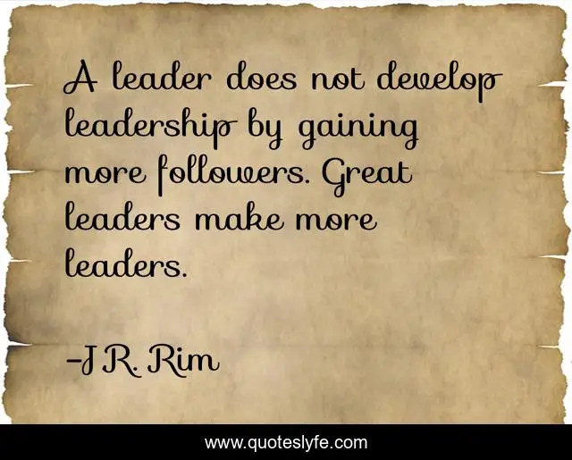 "J.R. Rim Quotes." Quoteslyfe.com, 2025. Tue. 09 Dec. 2025. <https://www.quoteslyfe.com/quote/A-leader-does-not-develop-leadership-by-64718>.