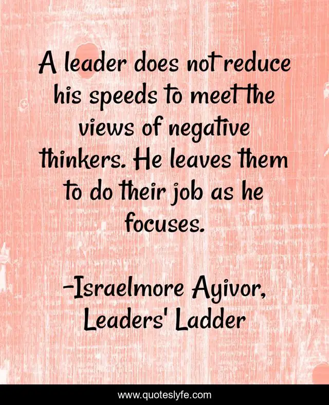 A leader does not reduce his speeds to meet the views of negative thinkers. He leaves them to do their job as he focuses.