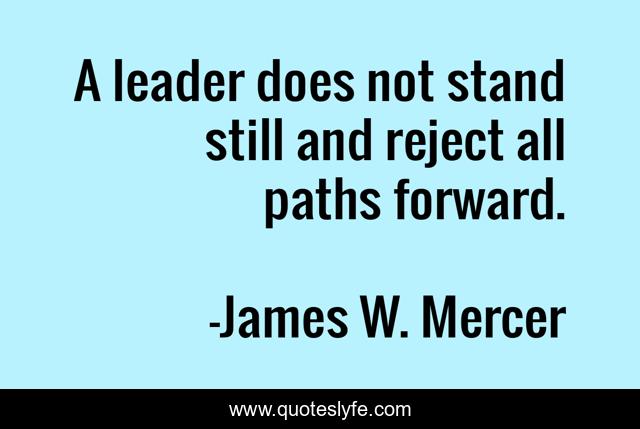 This page presents the quote "A leader does not stand still and reject all paths forward.". Author of this quote is James W. Mercer. .