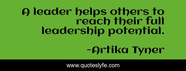 This page presents the quote "A leader helps others to reach their full leadership potential.". Author of this quote is Artika Tyner. This quote is about self-esteem, empowerment, leadership, self-help,.