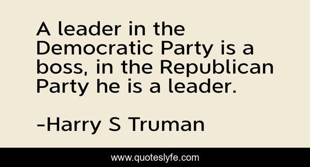 This page presents the quote "A leader in the Democratic Party is a boss, in the Republican Party he is a leader.". Author of this quote is Harry S Truman. This quote is about party, leader, boss,.