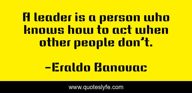 This page presents the quote "A leader is a person who knows how to act when other people don’t.". Author of this quote is Eraldo Banovac. This quote is about leadership, leader,.