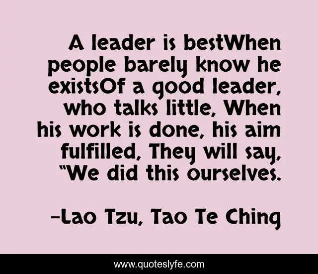 "Lao Tzu, Tao Te Ching Quotes." Quoteslyfe.com, 2025. Fri. 05 Dec. 2025. <https://www.quoteslyfe.com/quote/A-leader-is-bestWhen-people-barely-know-51113>.
