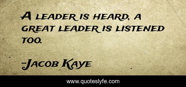 "Jacob Kaye Quotes." Quoteslyfe.com, 2025. Tue. 09 Dec. 2025. <https://www.quoteslyfe.com/quote/A-leader-is-heard-a-great-leader-218563>.