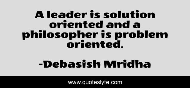 This page presents the quote "A leader is solution oriented and a philosopher is problem oriented.". Author of this quote is Debasish Mridha. This quote is about miraboli, oscar-wilde, philosophy, debasish-mridha, gandhi, quotes, leadership, what-is-a-leader, inspirational,.