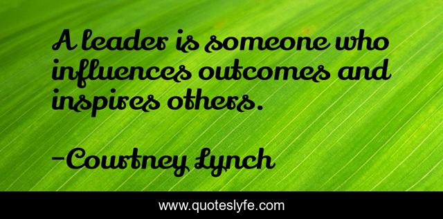 This page presents the quote "A leader is someone who influences outcomes and inspires others.". Author of this quote is Courtney Lynch. This quote is about leadership, leaders,.