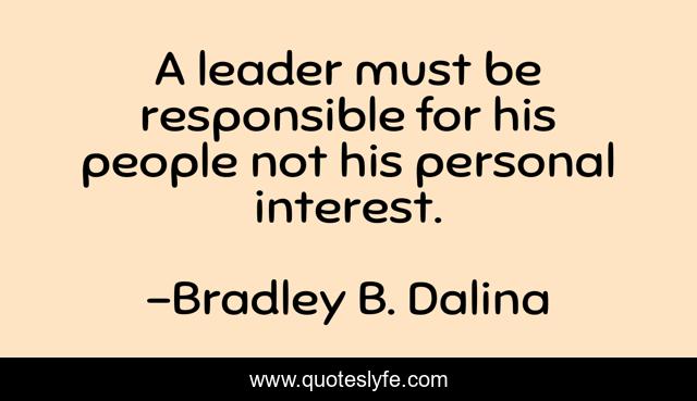 This page presents the quote "A leader must be responsible for his people not his personal interest.". Author of this quote is Bradley B. Dalina. This quote is about personal, responsible, bradley-dalina, interest, politics, leader,.