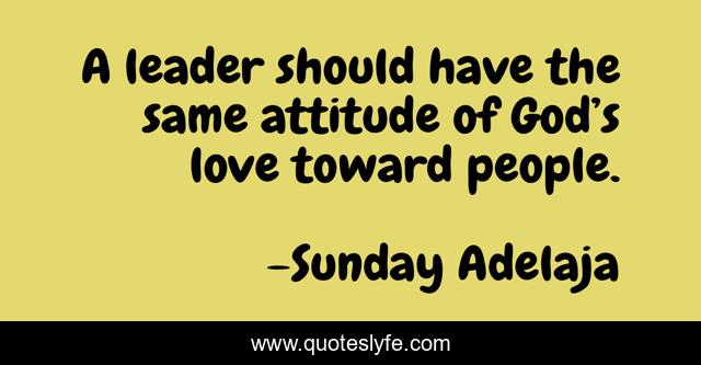 This page presents the quote "A leader should have the same attitude of God’s love toward people.". Author of this quote is Sunday Adelaja. This quote is about god-s-love, leaders,.