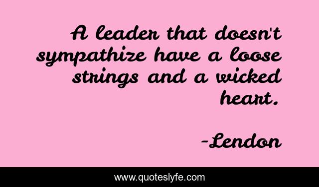 This page presents the quote "A leader that doesn't sympathize have a loose strings and a wicked heart.". Author of this quote is Lendon. .