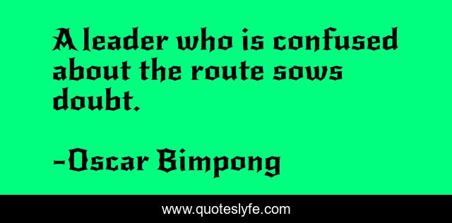 This page presents the quote "A leader who is confused about the route sows doubt.". Author of this quote is Oscar Bimpong. This quote is about doubt, leadership, confused-leader, sowing-seeds,.