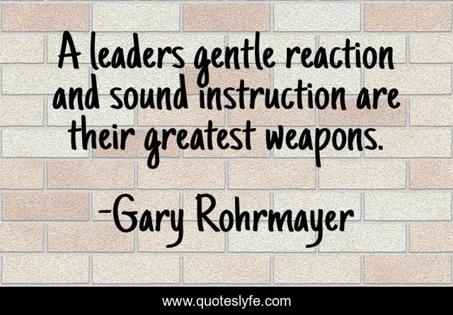 This page presents the quote "A leaders gentle reaction and sound instruction are their greatest weapons.". Author of this quote is Gary Rohrmayer. This quote is about reaction, leaders, leadership-development, angry, leadership, anger, leadership-characteristics,.