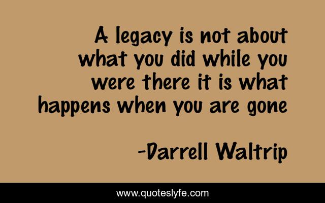 This page presents the quote "A legacy is not about what you did while you were there it is what happens when you are gone". Author of this quote is Darrell Waltrip. This quote is about life, death, inspirational, legacy, truth, enthusiasm,.