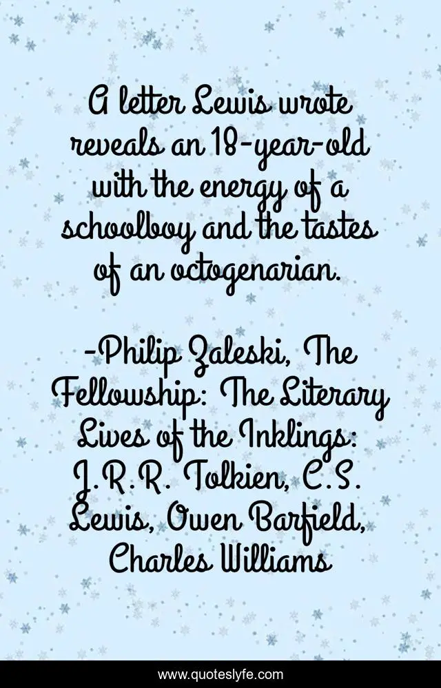 "Philip Zaleski, The Fellowship: The Literary Lives of the Inklings: J.R.R. Tolkien, C.S. Lewis, Owen Barfield, Charles Williams Quotes." Quoteslyfe.com, 2025. Mon. 08 Dec. 2025. <https://www.quoteslyfe.com/quote/A-letter-Lewis-wrote-reveals-an-18-34294>.