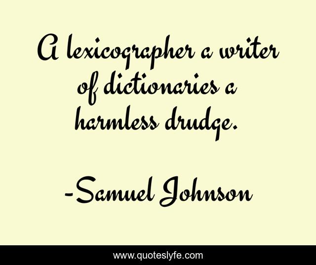 This page presents the quote "A lexicographer a writer of dictionaries a harmless drudge.". Author of this quote is Samuel Johnson. This quote is about books, reading,.
