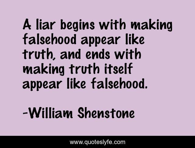 "William Shenstone Quotes." Quoteslyfe.com, 2025. Sat. 06 Dec. 2025. <https://www.quoteslyfe.com/quote/A-liar-begins-with-making-falsehood-appear-309965>.