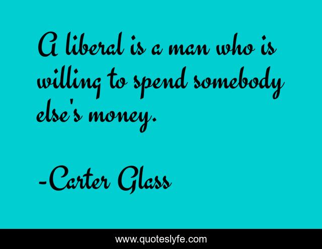 This page presents the quote "A liberal is a man who is willing to spend somebody else's money.". Author of this quote is Carter Glass. .