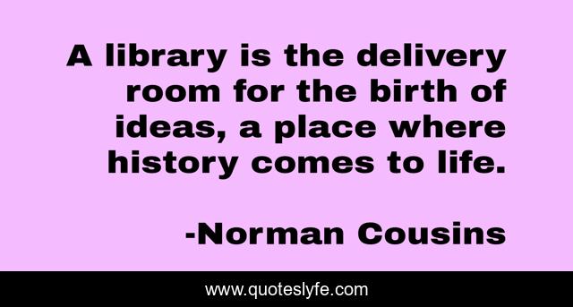 This page presents the quote "A library is the delivery room for the birth of ideas, a place where history comes to life.". Author of this quote is Norman Cousins. This quote is about books, library,.
