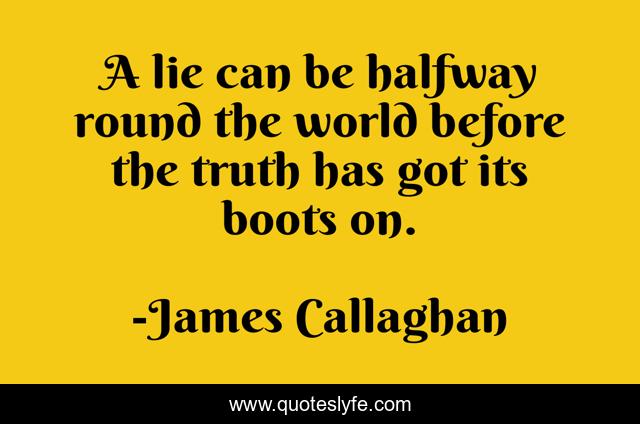 This page presents the quote "A lie can be halfway round the world before the truth has got its boots on.". Author of this quote is James Callaghan. This quote is about lie, boots, world,.