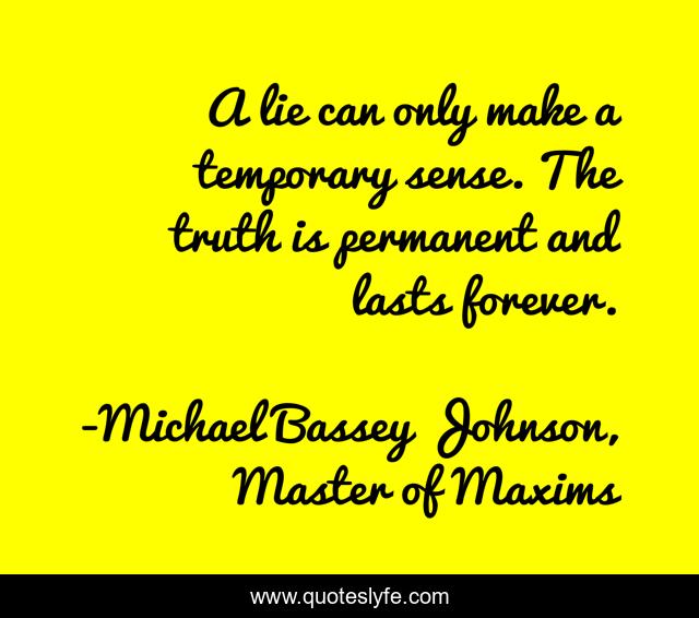 "Michael Bassey Johnson, Master of Maxims Quotes." Quoteslyfe.com, 2025. Sat. 06 Dec. 2025. <https://www.quoteslyfe.com/quote/A-lie-can-only-make-a-temporary-167447>.
