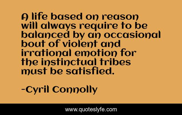 This page presents the quote "A life based on reason will always require to be balanced by an occasional bout of violent and irrational emotion for the instinctual tribes must be satisfied.". Author of this quote is Cyril Connolly. .