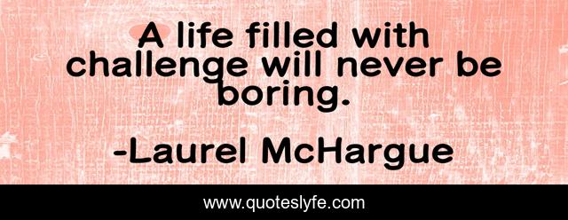 This page presents the quote "A life filled with challenge will never be boring.". Author of this quote is Laurel McHargue. This quote is about challenge, adventure,.