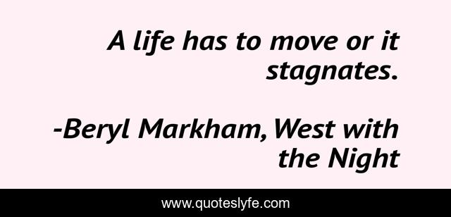 This page presents the quote "A life has to move or it stagnates.". Author of this quote is Beryl Markham, West with the Night. .