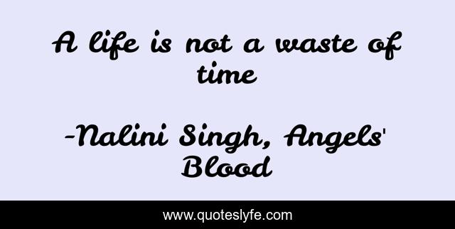 This page presents the quote "A life is not a waste of time". Author of this quote is Nalini Singh, Angels' Blood. This quote is about life, death, gratefulness, patience, time, waste, mortality,.