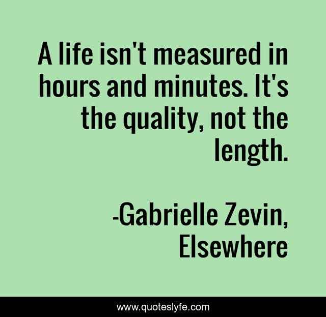 This page presents the quote "A life isn't measured in hours and minutes. It's the quality, not the length.". Author of this quote is Gabrielle Zevin, Elsewhere. .