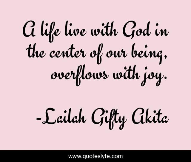 This page presents the quote "A life live with God in the center of our being, overflows with joy.". Author of this quote is Lailah Gifty Akita. This quote is about life-philosophy, life, life-and-living, life-lessons,.