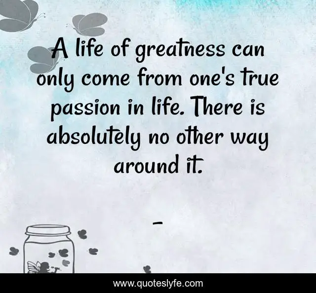 A life of greatness can only come from one's true passion in life. There is absolutely no other way around it.
