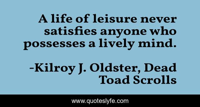 "Kilroy J. Oldster, Dead Toad Scrolls Quotes." Quoteslyfe.com, 2025. Mon. 08 Dec. 2025. <https://www.quoteslyfe.com/quote/A-life-of-leisure-never-satisfies-anyone-140611>.