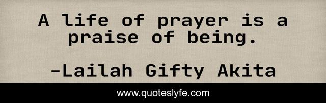 This page presents the quote "A life of prayer is a praise of being.". Author of this quote is Lailah Gifty Akita. This quote is about intercessory-prayer, praying, warfare, chrisitan, prayer,.