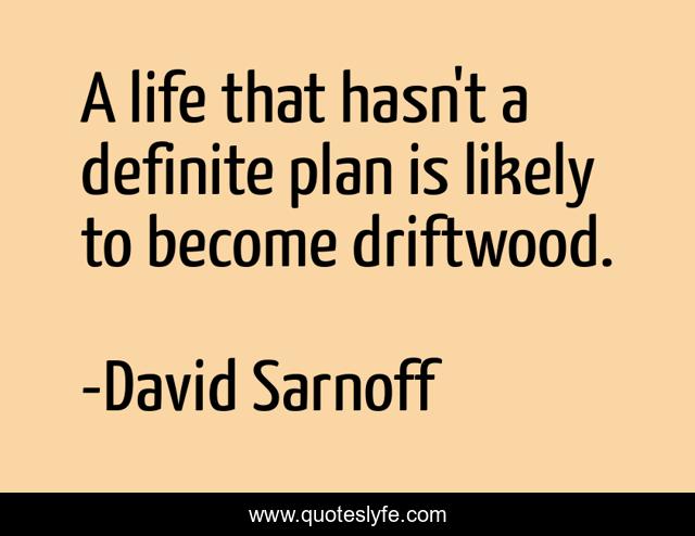 This page presents the quote "A life that hasn't a definite plan is likely to become driftwood.". Author of this quote is David Sarnoff. .