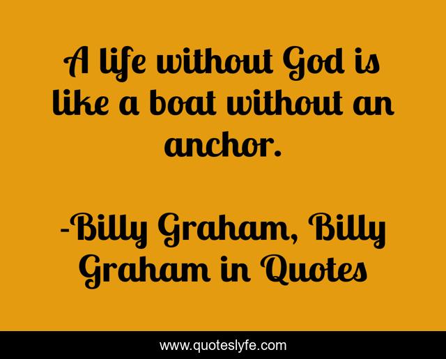 This page presents the quote "A life without God is like a boat without an anchor.". Author of this quote is Billy Graham, Billy Graham in Quotes. This quote is about life, billy-graham,.
