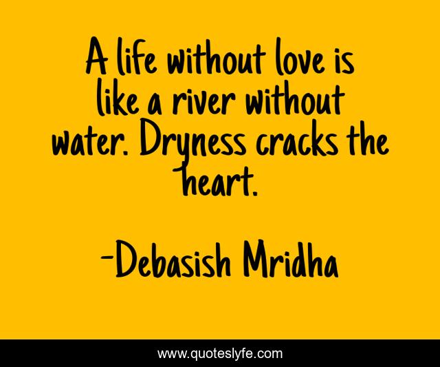 This page presents the quote "A life without love is like a river without water. Dryness cracks the heart.". Author of this quote is Debasish Mridha. This quote is about dryness-cracks-the-heart, river-without-water, mridha, debasish, debasish-mridha, life-without-love, philososhy,.