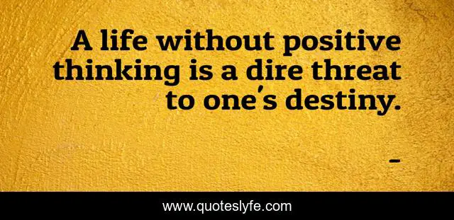 This page presents the quote "A life without positive thinking is a dire threat to one's destiny.". Author of this quote is . This quote is about life, a-positive-life, edmond-mbiaka, one-s-destiny, positive-thinking, thinking-positive,.