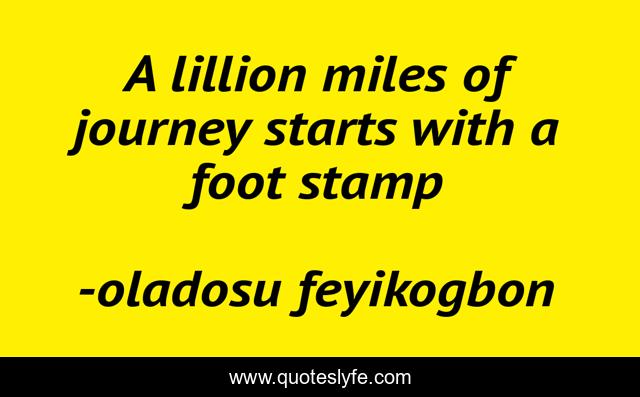 This page presents the quote "A lillion miles of journey starts with a foot stamp". Author of this quote is oladosu feyikogbon. This quote is about forward, feyikogbon, advice, aspirational, life,.