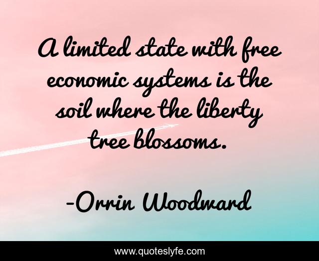This page presents the quote "A limited state with free economic systems is the soil where the liberty tree blossoms.". Author of this quote is Orrin Woodward. This quote is about freedom, libertarianism, economics, liberty,.
