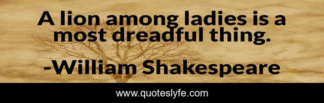 This page presents the quote "A lion among ladies is a most dreadful thing.". Author of this quote is William Shakespeare. .