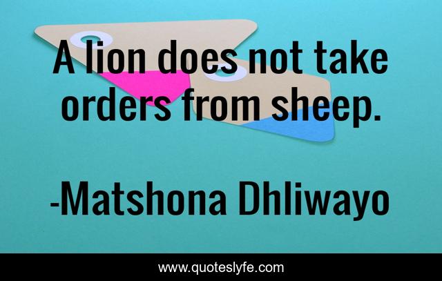 "Matshona Dhliwayo Quotes." Quoteslyfe.com, 2025. Fri. 05 Dec. 2025. <https://www.quoteslyfe.com/quote/A-lion-does-not-take-orders-from-98443>.