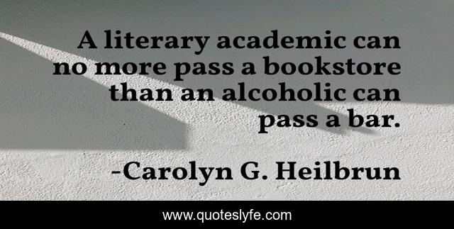 This page presents the quote "A literary academic can no more pass a bookstore than an alcoholic can pass a bar.". Author of this quote is Carolyn G. Heilbrun. This quote is about books, humor,.