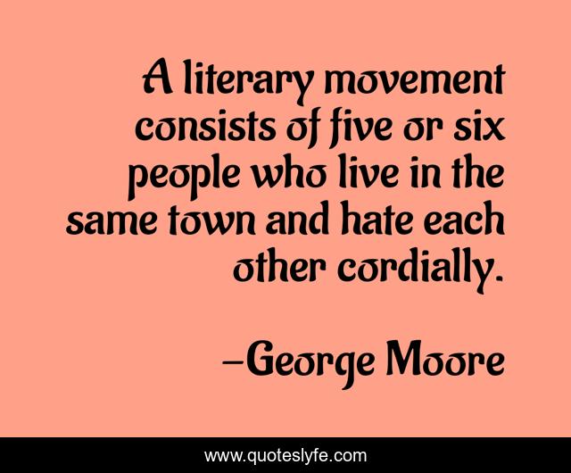 This page presents the quote "A literary movement consists of five or six people who live in the same town and hate each other cordially.". Author of this quote is George Moore. .