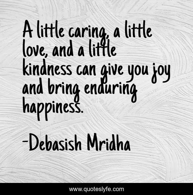 This page presents the quote "A little caring, a little love, and a little kindness can give you joy and bring enduring happiness.". Author of this quote is Debasish Mridha. This quote is about caring, life, education, love, truth, inspirational, intelligence, philosophy, wisdom,.