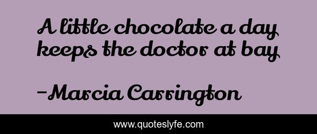This page presents the quote "A little chocolate a day keeps the doctor at bay". Author of this quote is Marcia Carrington. This quote is about food, humor, foodie, health, chocolate,.