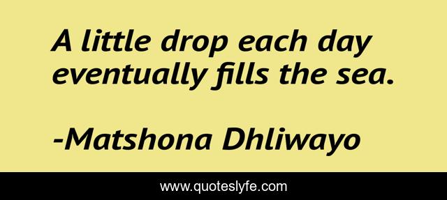 "Matshona Dhliwayo Quotes." Quoteslyfe.com, 2025. Sat. 06 Dec. 2025. <https://www.quoteslyfe.com/quote/A-little-drop-each-day-eventually-fills-98577>.