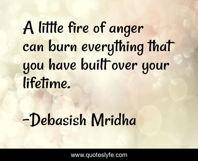 This page presents the quote "A little fire of anger can burn everything that you have built over your lifetime.". Author of this quote is Debasish Mridha. This quote is about fire-of-anger, philosophy, debasish-mridha, quotes, debasish-mridha-md, inspirational, lifetime, anger, enthusiasm,.