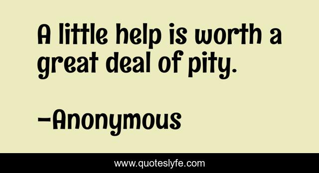 This page presents the quote "A little help is worth a great deal of pity.". Author of this quote is Anonymous. This quote is about helping, people,.
